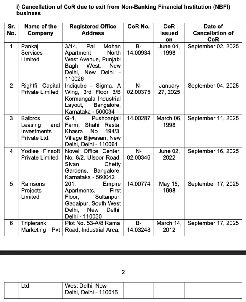 35 NBFCs Closed in India Today: 21 License Cancelled, 14 License Surrendered