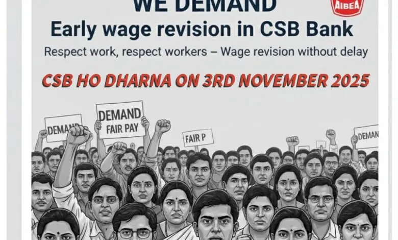 All India Bank Employees’ Association has announced dharna at CSB Bank on 3rd November 2025.