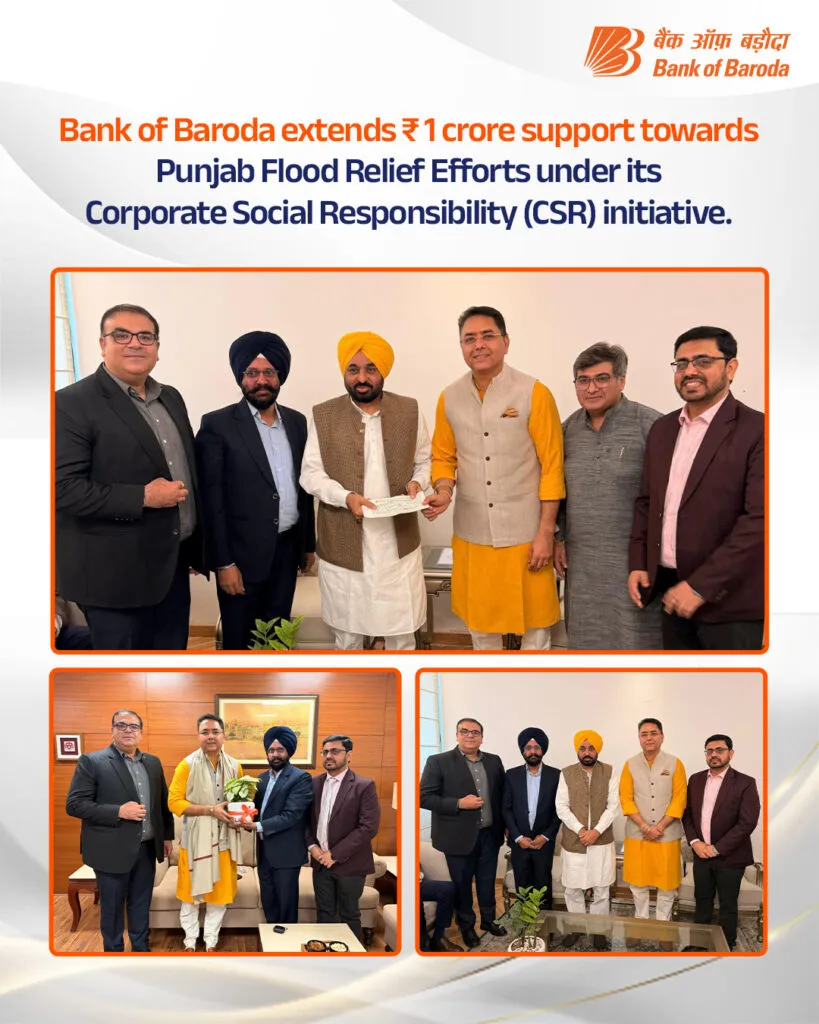 In a remarkable gesture of solidarity and social commitment, Bank of Baroda, one of India’s leading public sector banks, has contributed ₹1 crore to the Punjab Chief Minister’s Relief Fund to support flood relief and rehabilitation efforts across the state.