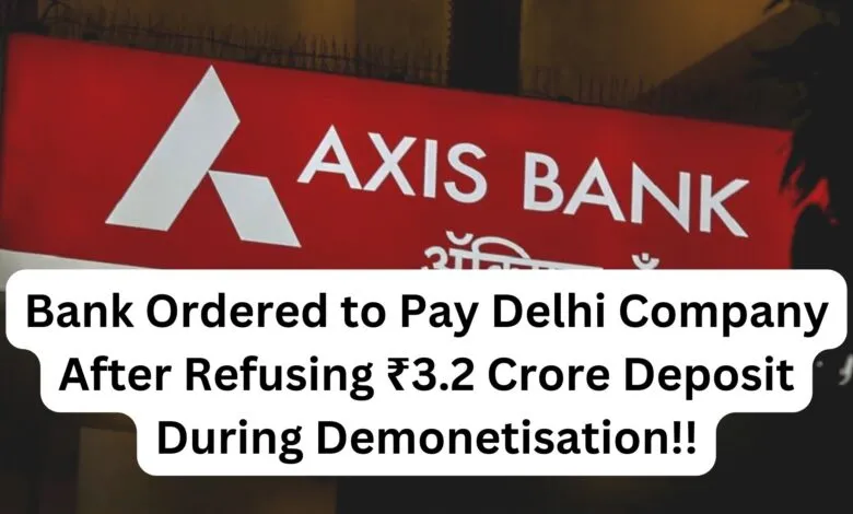 The National Consumer Disputes Redressal Commission (NCDRC) has ordered Axis Bank to pay more than ₹3.19 crore with 6% interest to a Delhi-based company after the bank refused to accept its cash deposit during the 2016 demonetisation period.