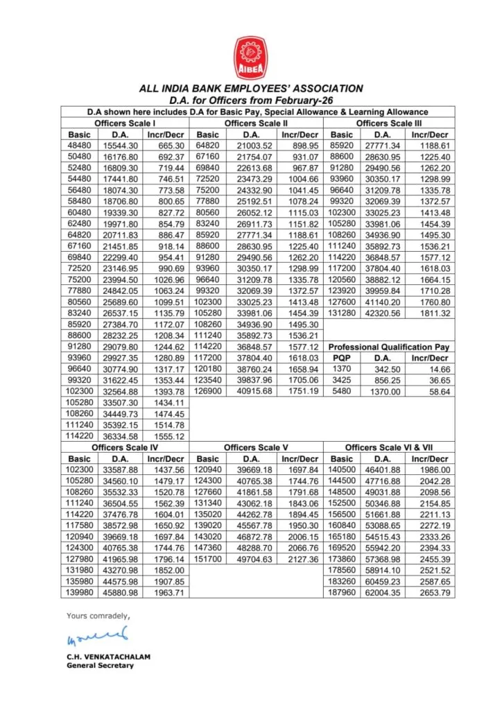 New DA Rates for Bank Employees