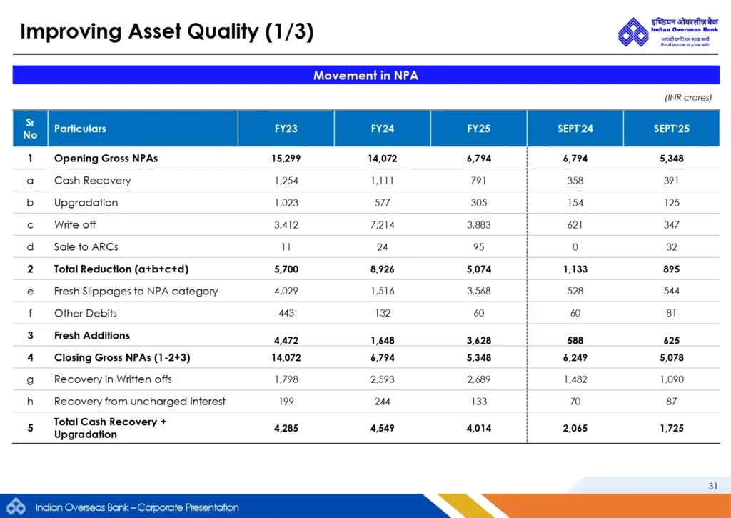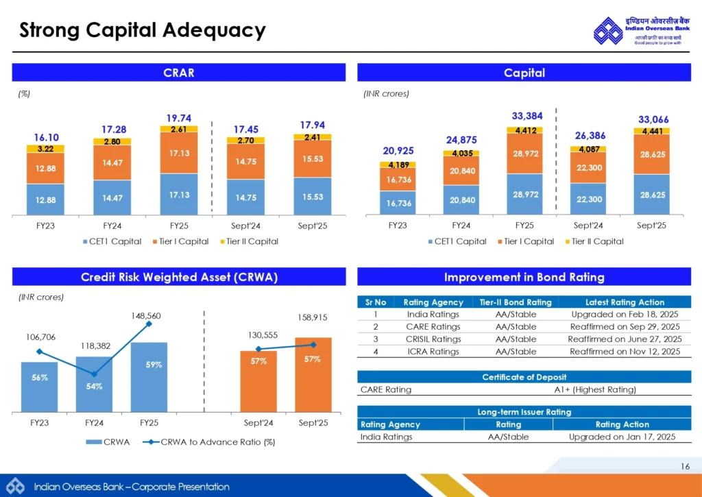 Check the Indian Overseas Bank Financials and All Details as of November 2025 with the help of a slideshow. Click on the right and left arrows or slide from right to left to view the next details.