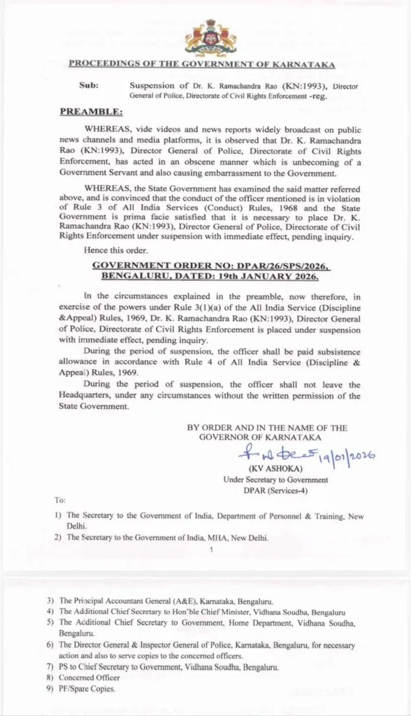 Karnataka DGP has been suspended by the Government after a video went viral on social media. The video showed DGP engaged in intimate acts with women inside office.