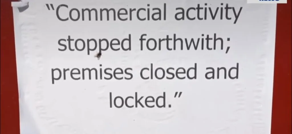 A notice was put at the Branch by JMC. The notice stated that the branch has been seized due to issues in commercial operations.