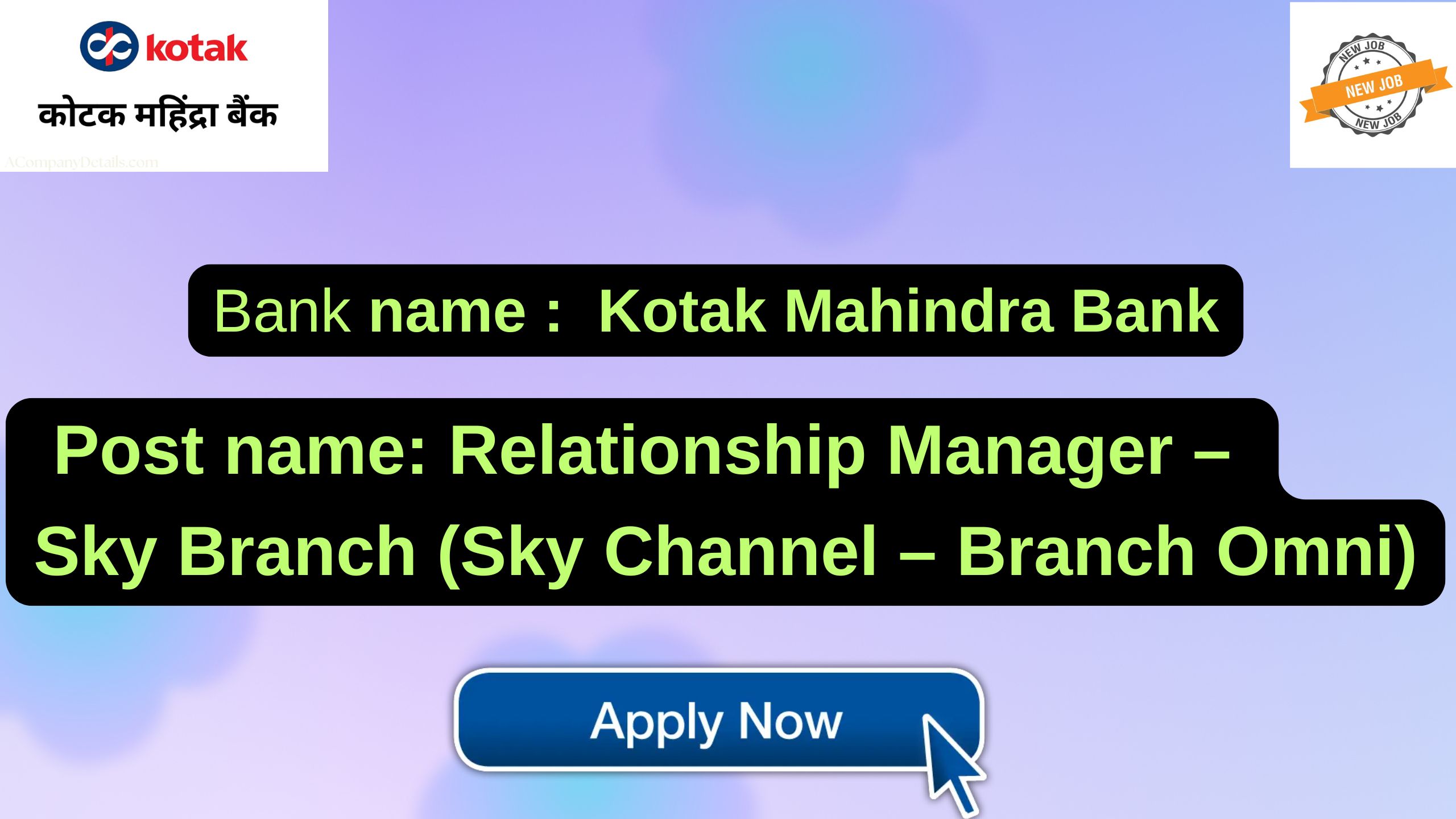 | Job Responsibilities: | The Relationship Manager – Sky Branch (Omni Channel) plays a key role in delivering seamless and personalized banking services to customers through both digital and assisted channels. This position focuses on relationship management, cross-selling of banking products, and ensuring superior customer experience via Kotak’s Sky Branch platform — an omni-channel ecosystem integrating physical and digital banking. |