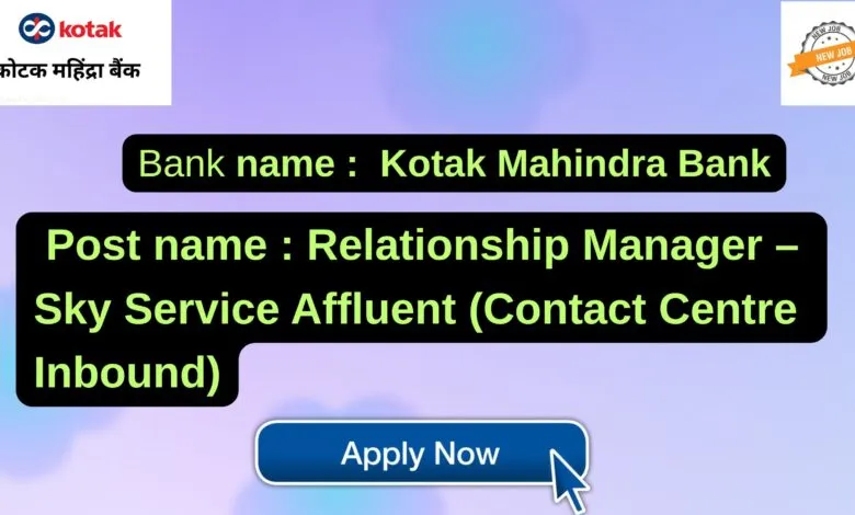 Kotak Mahindra Bank New Job : Apply for the post of Relationship Manager – Sky Service Affluent (Contact Centre Inbound)