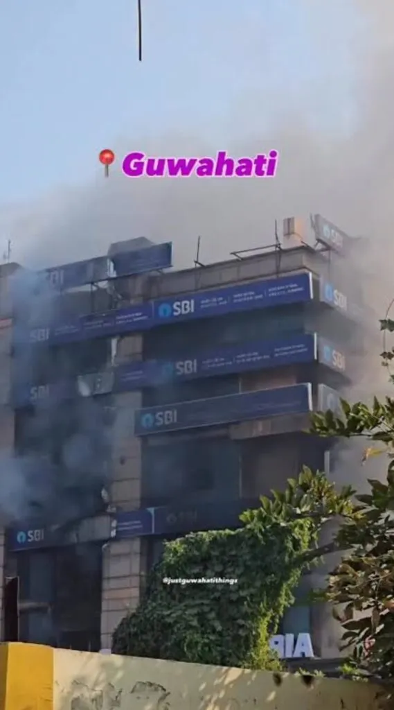 A massive fire broke out in a multi-storey building in Guwahati early Wednesday, destroying property, important documents, and possibly a large amount of cash belonging to the State Bank of India (SBI).