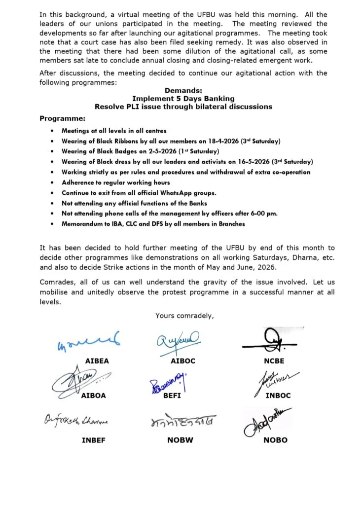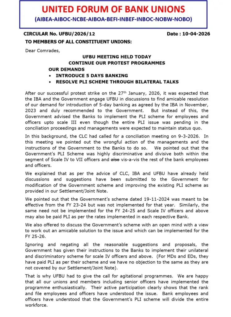 Protest Continues: UFBU announces Agitation against new PLI scheme