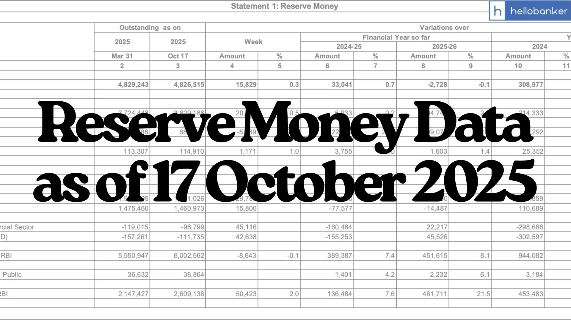 The Reserve Bank has today released data on Reserve Money for the fortnight ended October 17, 2025. The data is as given below. You can also download data from link given at last.
