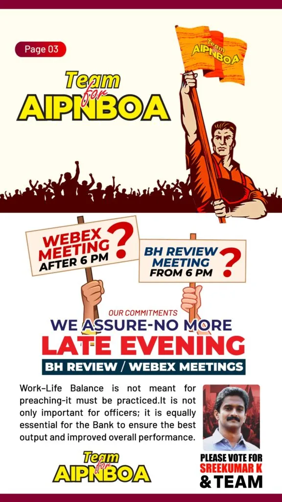 #1) Ending Late Evening Meetings: AIPNBOA President Shri Sreekumar has promised to put a complete stop to late evening meetings so that officers can maintain a healthy work-life balance. Currently, in Banks, conducting late evening meetings has become increasingly common. This adds to extra pressure on employees and disrupts the work-life balance.