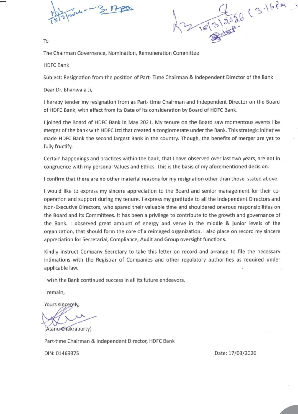 Why HDFC Bank Chairman Atanu Chakraborty Resigned? Reason Revealed