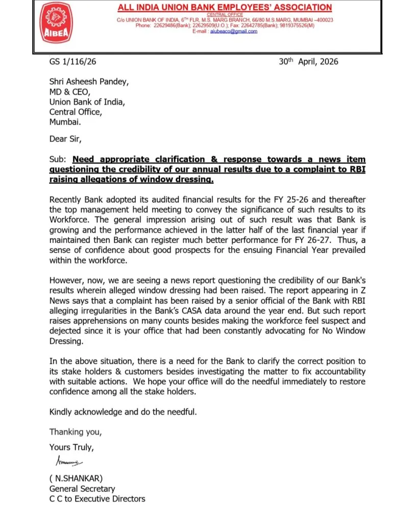 Union Bank of India has denied the allegations. The bank said that recent reports are based on an unverified letter and contain factual errors. It said its financial results are properly audited and present a true and fair view.