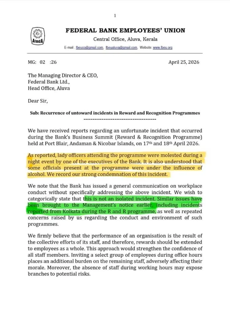 A shocking and serious incident has been reported in Federal Bank.